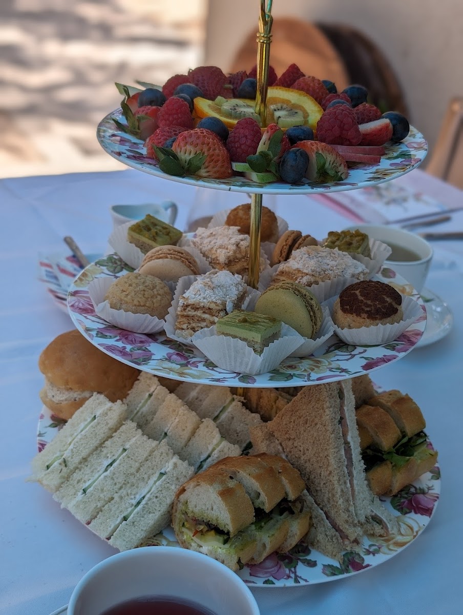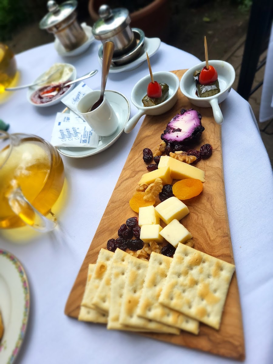 One of the highlights of the menu is the High Tea for 4, a perfect option for those who want to indulge in a traditional tea experience. This impressive spread includes a variety of delicate and savory treats, like freshly baked scones, a rich cheese plate with saltine crackers, assorted cheeses, dried cranberries, dried apricots, walnuts, and dolma. You’ll also find a fresh starter salad with dried cranberries, sunflower seeds, and balsamic vinaigrette over a bed of mixed greens. It’s a truly satisfying experience, ideal for sharing with friends or family.